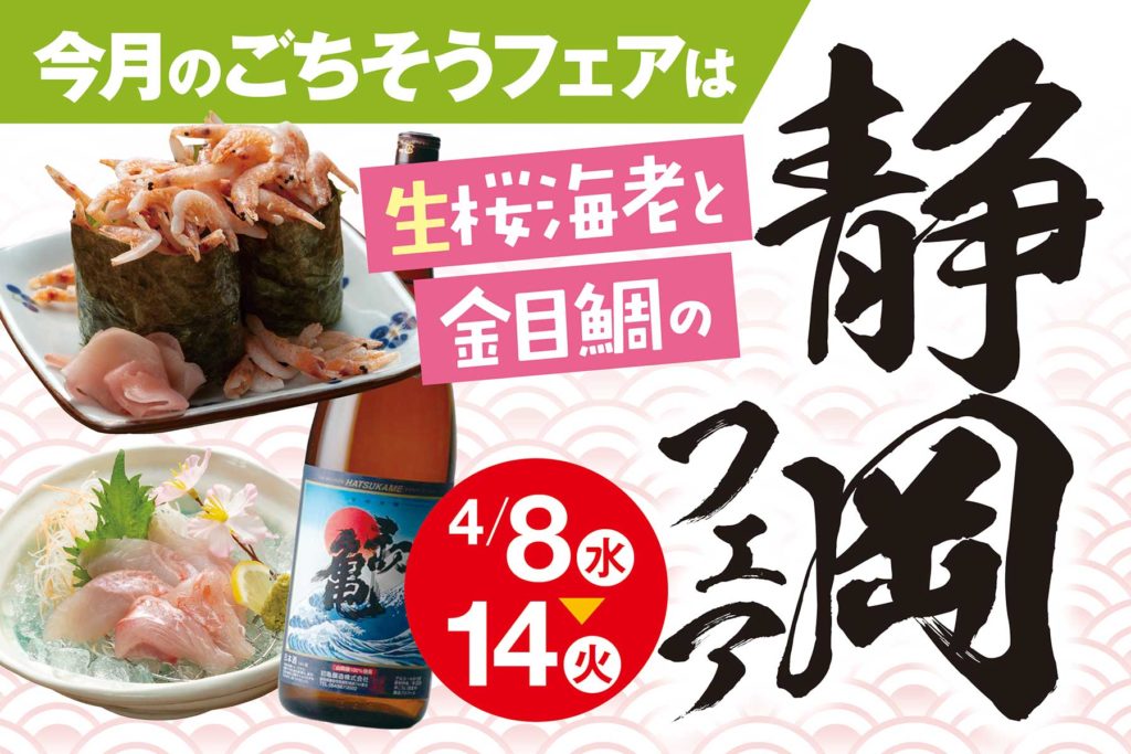 春らしい桜色を静岡の地酒といっしょに!4月のごちそうフェアは『生桜海老と金目鯛の静岡フェア』