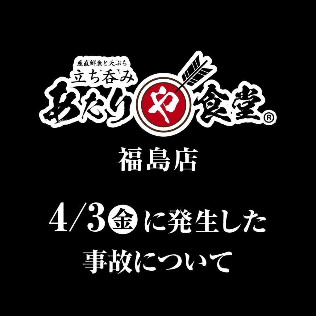 【大切なお知らせ:4/3に発生した事故について】あたりや食堂 福島店