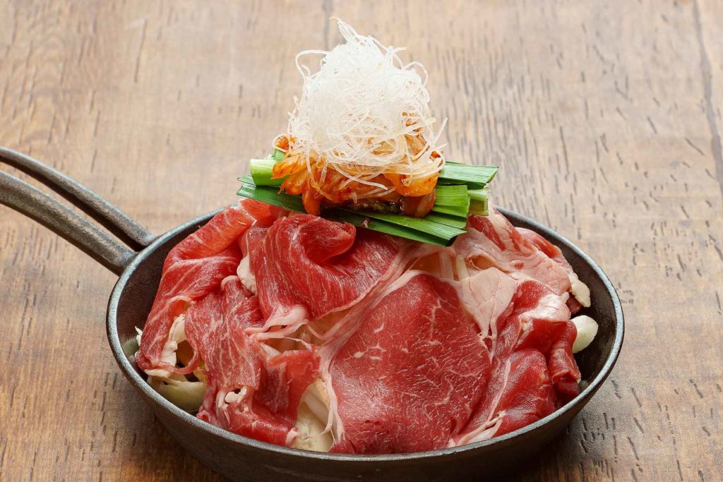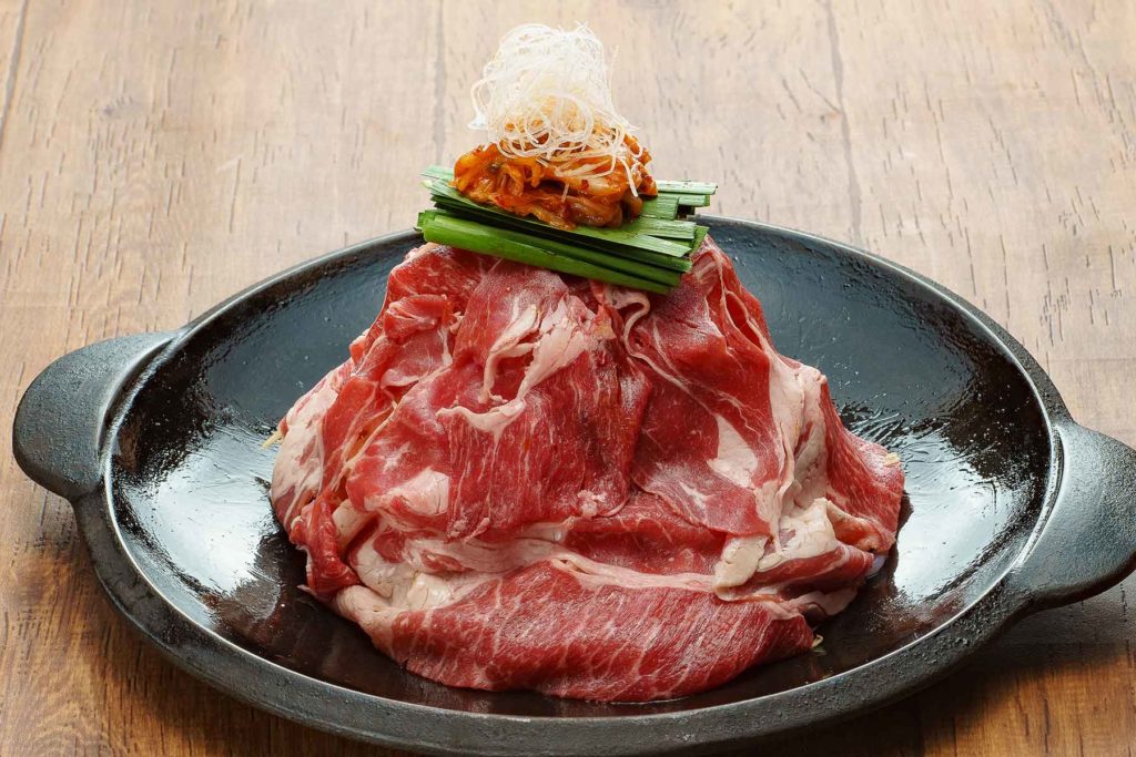 上質の牛肉の山の中は、キャベツやもやしなど野菜がたっぷり♪