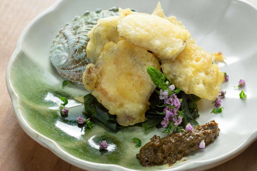 ● 活け 煮アワビ天ぷら 特製肝ソース