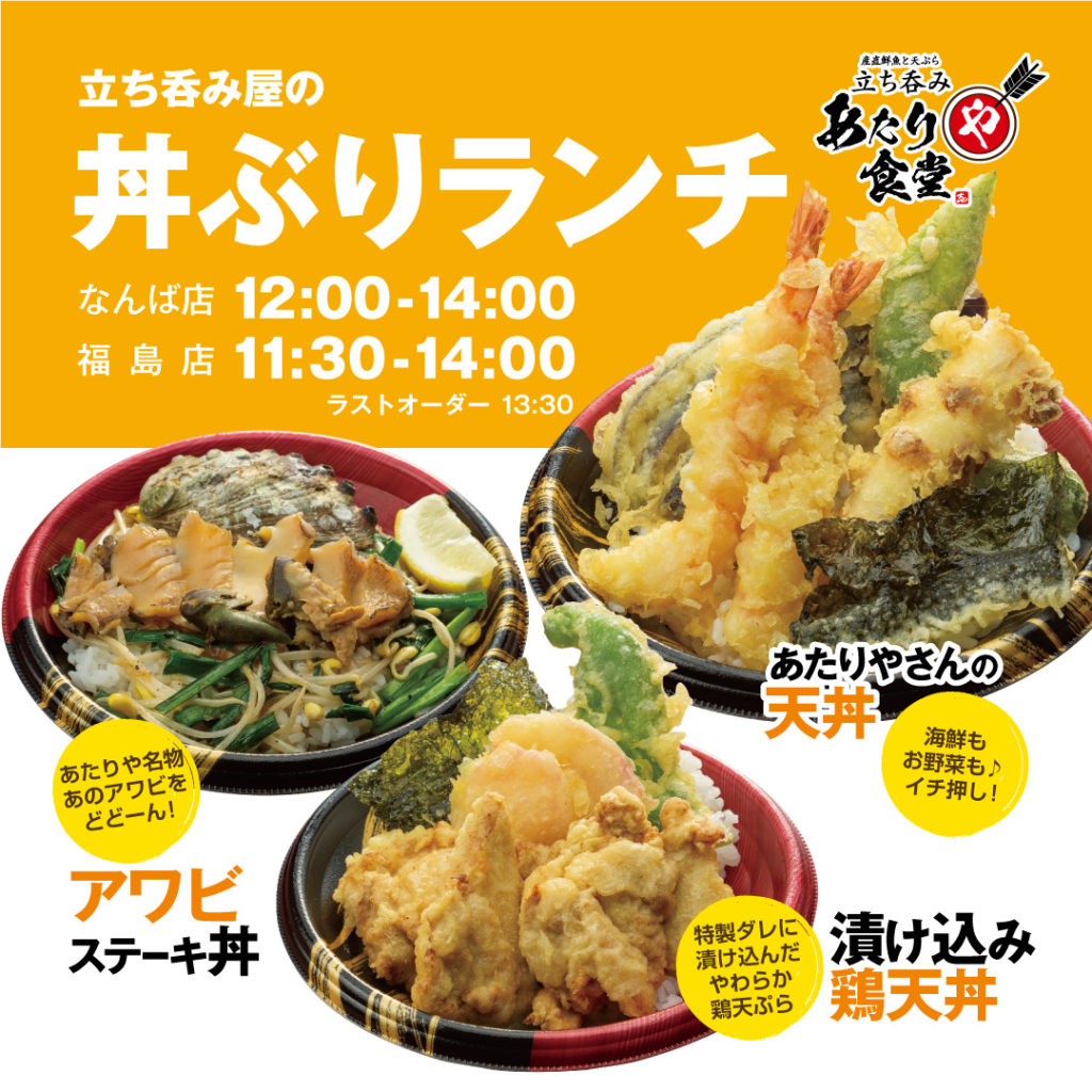 【あたりや食堂 なんば・福島】立ち呑み屋の丼ぶりランチ はじめました!